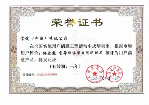 2016年12月,宝健喜讯连传。先是于14日凭借优秀的产品品质,被商务部主管的中国外商投资企业协会评为“客户好朋友”。紧接着又于19日被国务院国资委主管的中国质量协会评为“全国用户满意产品”,可谓双喜临门。