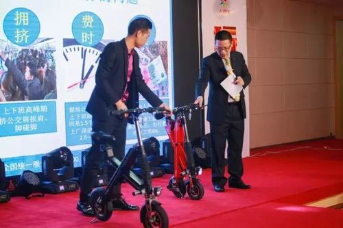 【六一集团教育部总监缪斌对迷你型智能电动单车进行讲解】