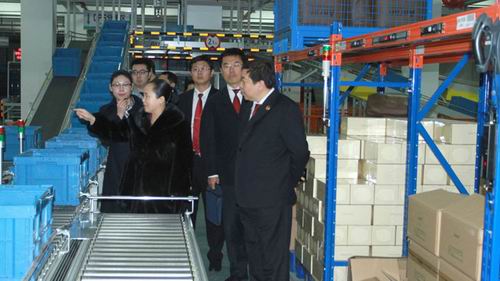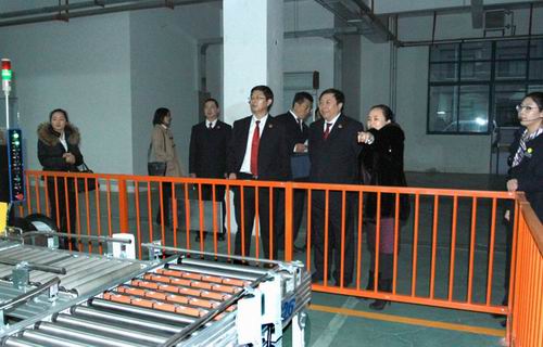 梁总陪同检察院领导一行参观安然的智能化立体仓库