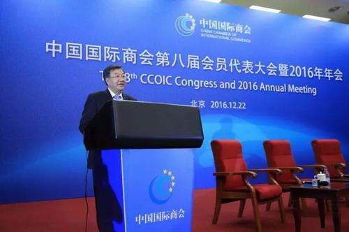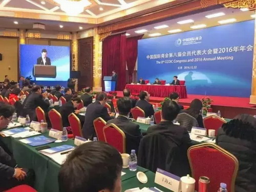12月22日,中国国际商会第八届会员代表大会暨2016年中国国际商会年会在北京举行,中国贸促会、中国国际商会会长姜增伟、副会长陈洲、秘书长于健龙出席会议并发表讲话,来自有关部委的领导和近700名商会会员代表出席了会议。