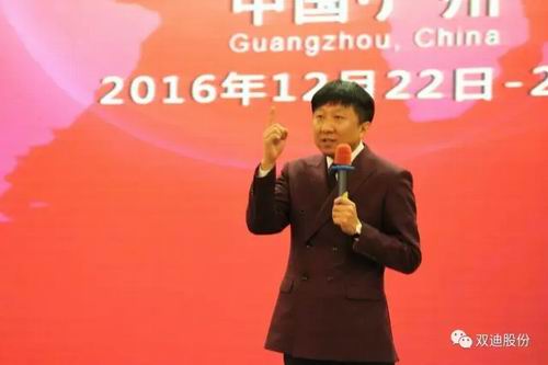 香港百岁天下国际集团有限公司董事长陈玉国致欢迎词,他表示,非常荣幸加盟双迪,双迪实施“会+直”新模式,对我们来说是一个巨大的机遇。我们有信心,在陈玉松先生的带领下,在双迪事业平台上,不断创造出绝对财富新奇迹。