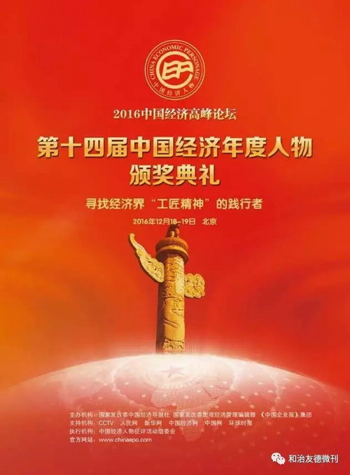 12月19日,以“聚焦经济发展、评点新闻人物”为主题,由国家发改委中国经济导报社、国家发改委宏观经济管理编辑部、《中国企业报》集团联合主办的“2016中国经济高峰论坛暨第十四届中国经济人物颁奖典礼”在北京隆重举行。此次大会天津和治友德制药有限公司荣获“中国经济新领军企业”、韩金明董事长获“中国经济十大创业人物”奖项,双奖齐获,誉满而归。