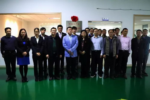 中共黄江镇镇委委员徐文钊、金科伟业(中国)有限公司支部委员会书记刘淑祎共同为中国共产党金科伟业(中国)有限公司支部委员会揭牌,并与全体党员合影留念。