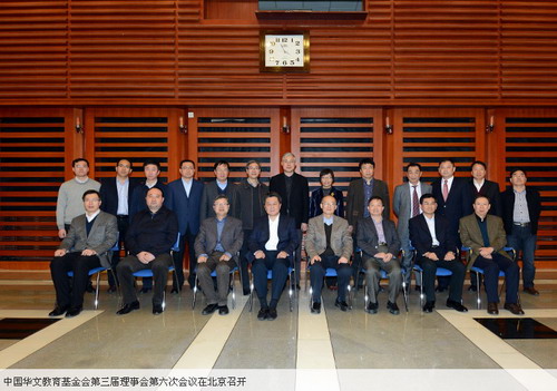 12月22日,中国华文教育基金会第三届理事会第六次会议在北京召开。会议由中国华文教育基金会理事长赵阳主持,国务院侨办副主任李刚出席会议并讲话。中央统战部、外交部、财政部、文化部、国家新闻出版广电总局、全国政协港澳台侨委员会、教育部、中国侨联、国务院侨办、暨南大学、华侨大学、北京华文学院、完美(中国)有限公司等理事单位参会并进行了选举。