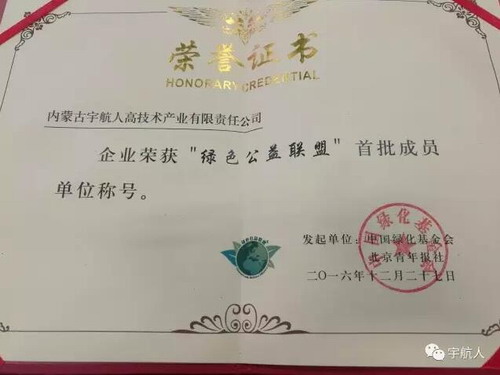 宇航人荣获“绿色公益联盟”首批成员单位称号