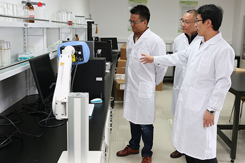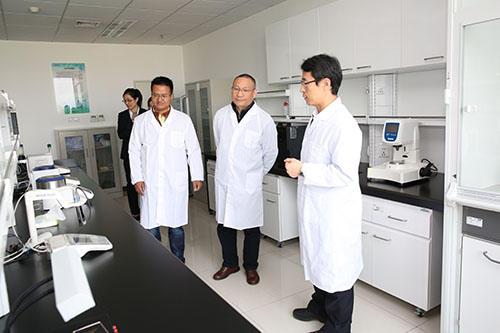 随后,在国珍健康研究院副院长温霖的陪同下,陈澍主任与郑煜铭博士参观了公司保健食品研究室、日化产品研究室、健康用品研究室等实验室。温副院长为两位专家详细介绍了公司在保健食品、日化产品、健康用品等方面的研发成果与进展,双方就共同关心的科技研发、科研合作等话题进行了深入洽谈。