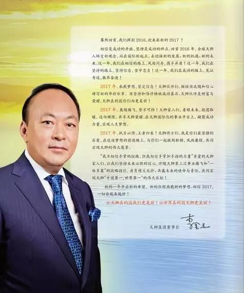 承载梦想坚定信念 天狮集团李金元2017寄语