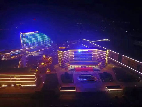 夜幕渐渐降临,伙伴们的兴致却越来越高。夜晚的产业园又是别一番景象:楼宇灯光姹紫嫣红,变幻万千,闪烁着的彩色的光芒,倒映在水面,折射着层层涟漪……