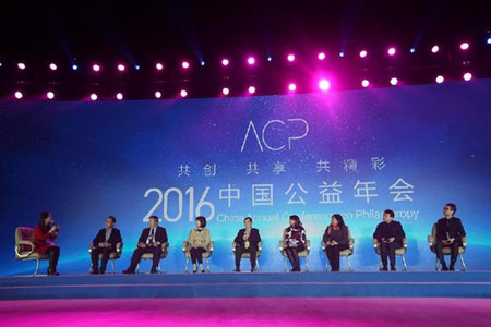 2016中国公益年会由《公益时报》联合中华少年儿童慈善救助基金会、中国扶贫基金会、中国儿童少年基金会、中华社会救助基金会、中国华侨公益基金会、中国妇女发展基金会等机构共同发起。活动现场,来自社会组织、企业、学术机构、媒体等相关行业的千余名公益代表齐聚一堂,就供给侧改革、精准扶贫、弱势群体发展、公益金融、公益与商业等公益热点话题进行了探讨,分享了基金会、社会服务机构、社团、企业等不同机构实施的公益创新案例,并就行业发展进行了全方位、深层次的交流。