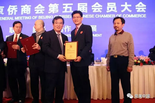 完美(中国)胡瑞连当选北京侨商会常务副会长