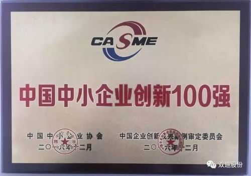 元旦佳节前夕,在中国中小企业协会、中国企业创新成果案例审定委员会共同组织的“2016年中国企业创新成果”评审中,双迪股份被评为“中国中小企业创新100强”称号。
