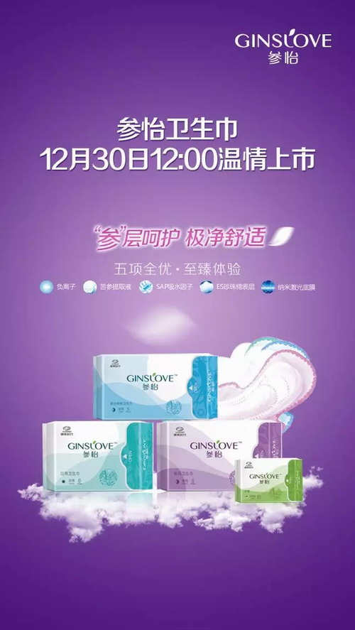 5项全优尽享极净舒适 康美参怡卫生巾上市