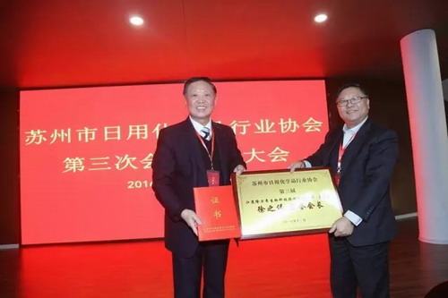 徐董被授予苏州市日用化学品行业协会名誉会长