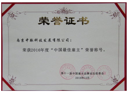 12月31日,第十一届中国雇主品牌论坛暨2016年度中国最佳雇主评选颁奖盛典在北京举行。中脉再次荣登榜单,获2016年度“中国最佳雇主”奖项。同时入选榜单的还有阿里巴巴、中国银行、凤凰网、中国东方航空、华为、沃尔玛等80家企业。