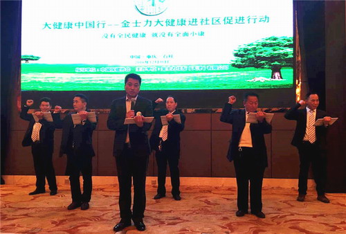 接下来金士力佳友(天津)有限公司重庆分公司经理许萌先生为大会致辞,他首先代表公司对当地政府的大力支持表示感谢,并表示公司将全力以赴落实“大健康中国行”的各项举措,汇集优良社会资源,为社区百姓传播大健康知识、普及大健康教育、提供大健康服务;帮助人们走出健康误区,制定适合自己的大健康管理方案,拥有健康与快乐的生活。