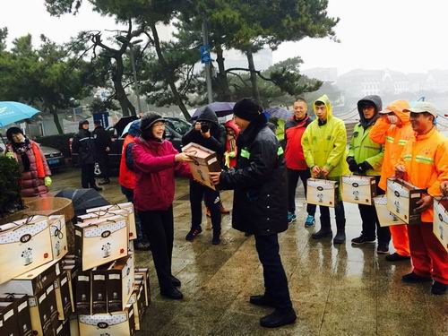 2016年12月,青岛市南区城市管理局联合中国商报、新华网、人民网等驻青26家媒体30多名记者共同体验环卫工人的工作,并联合发起“垃圾不落地城市更美丽”公益倡议活动。长青中国作为本次活动的爱心企业,将人参咖啡礼盒送到环卫工人手中,为他们带去了冬日的温暖。