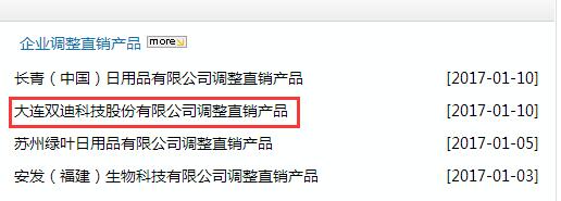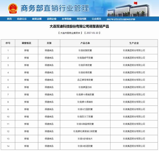 昨日(2017年1月10日),商务部直销行业管理信息系统网站公示大连双迪科技股份有限公司直销产品新增14款保健食品。
