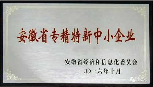 为深入实施“调转促4105”行动计划,推进供给侧结构性改革,进一步展示安徽中小企业发展成果,树立标杆、示范引导企业坚定走“专精特新”发展之路,整合资源给予重点扶持,支持企业做优做强。2016年底,安徽省经济和信息化委员会认定安徽省康美来大别山生物科技有限公司为“安徽省专精特新中小企业”,并颁发铜牌。据了解,这是金寨县唯一家被安徽省认定“专精特新”企业。