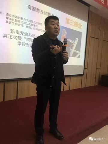 伴随嘹亮整齐的珍奥双迪《孝道宣言》的诵读声,1月17日,双迪股份兆和系统美玲团队招商会在生物谷隆重召开。虽然会议只有一天半的时间,但是会议丰富的内容,热烈的气氛得到了与会经销商的高度赞赏。双迪股份兆和系统总裁赵志利、首席执行官孙智君、执行总裁孙美玲、运营总裁李钰、市场营销总监陶学伟出席会议并发表了精彩演讲。