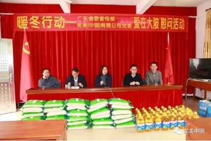 2017年春节将至,为了进一步改善贫困群众的生活条件,让他们过上一个和美、快乐的节日,1月18日,广东省委宣传部携手完美(中国)有限公司党委、广东分公司党支部到省委宣传部精准扶贫点韶关市新丰县马头镇大陂村开展“暖冬行动 爱在大陂”慰问活动,给当地扶贫户送上慰问金和米、油等生活物资,同时也给扶贫户的孩子送上书包,送上完美公司的温暖和关爱。村民在领取慰问物资时,对完美的爱心帮扶非常感动,感激之情溢于言表!