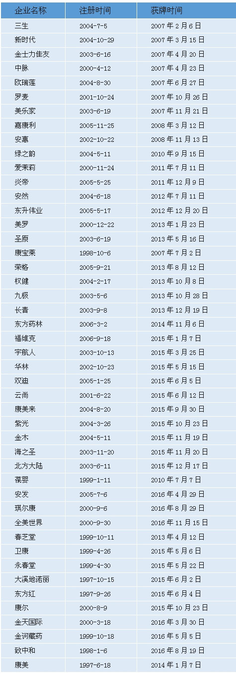 从获牌时间看,2015年获牌的企业最多,达到了15家,占46家企业的33%。其中内资13家外资2家。