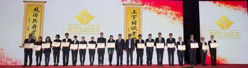 北京罗麦科技集团副总裁、北京罗麦科技有限公司总裁安凯先生与北京罗麦科技集团副总裁、北京罗麦科技集团监事会主席臧权武先生为第一批优秀员工颁奖。