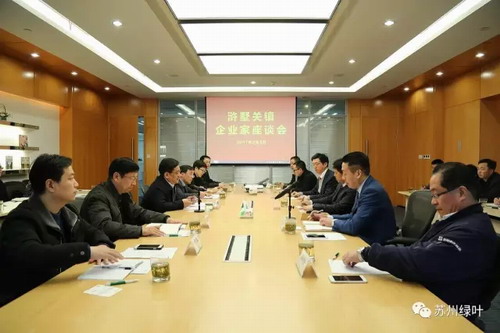2017年2月3日,中国农历春节正月初七,新年开工第一天,苏州市副市长、高新区党工委书记徐美健一行莅临绿叶集团视察调研工作,并出席在绿叶集团举行的苏州市高新区浒墅关镇企业家座谈会。