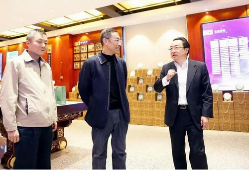 省国家税务局局长张树学、省地方税务局局长唐新民一行参观龙润展厅,盛赞龙润姓氏茶极具创意