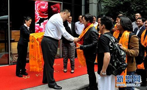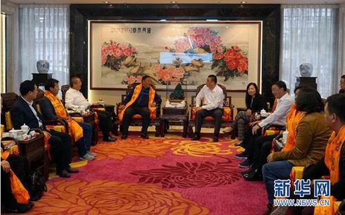 马兴田向到访的藏族代表献哈达