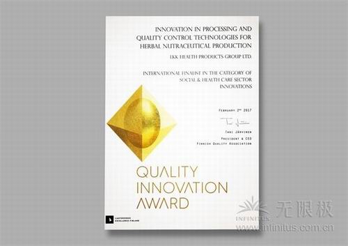 2017年2月2日,2016年度国际质量创新大赛颁奖发布会在捷克首都布拉格举行,李锦记健康产品集团成员无限极(中国)有限公司作为唯一代表中国参加“社会和医疗行业创新”类别大赛的企业,其自主创新项目“中草药保健食品工艺、质量一体化技术创新项目”首获大奖,载誉而归!并于2月7日参加了由中国质量协会、卓越国际质量科学院在北京主办的“2016年度国际质量创新大赛中国获奖项目新闻发布会”。