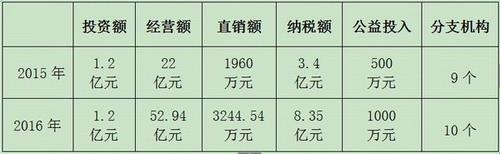 1.天津尚赫保健品有限公司。2016年经营额52.94亿元,直销额3244.54万元,纳税额8.35亿元,公益投入1000万元,直销区域涉及10个省和直辖市,设立分支机构10个。同比大幅度提升。