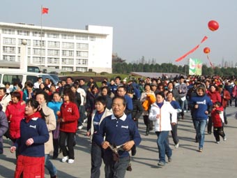1月6日下午,嘉兴市举办安利2007市民万人迎春健身跑活动。参加万人迎春健身跑活动的有男女老少,工农兵学商,还有党政领导机关干部。市委书记黄坤明,副市长张志伟等领导亲临领跑。为“全民健身与奥运同行”这个主题开了好头。