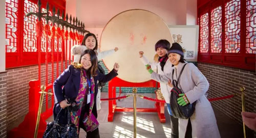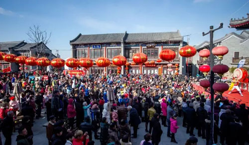 上午8点半,领导人们来到威海民俗文化邨,展开了一场精神寻根之旅,在孔庙前祈福并许下心愿,欣赏京味民俗,品尝特色小吃,参与传统游戏……精彩的舞龙、吹糖人、内画、画糖人、草编等手工艺品、各种戏曲绝活顶坛子、吕剧、萌宠、灯谜、射箭等,让伙伴们赞叹不已,流连忘返。
