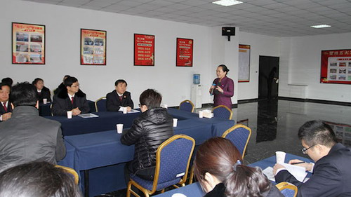 副董事长、总裁梁浩女士向区检察院领导一行做文化建设工作的报告