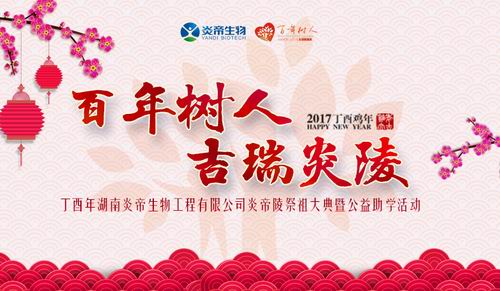 百年树人,吉瑞炎陵——丁酉年湖南炎帝生物工程有限公司炎帝陵祭祖大典暨公益助学活动于2017年2月9日在炎陵县再度慈航,湖南炎帝生物工程有限公司董事长黄佳林先生、上海三湘投资控股有限公司副总裁厉农帆先生以及湖南炎帝生物工程有限公司全球执行总裁钟建和先生携炎帝生物全体高管与百余名经销商伙伴与孩子们再次温馨聚首,亲密交流。
