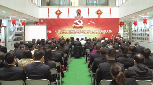 2017年2月9日,中共广东太阳神集团有限公司委员会第六届换届选举党员大会在太阳神营销总部成功召开。本次大会受到了东莞市各级领导和公司领导的高度重视,中共黄江镇委委员、镇企工委书记徐文钊,副书记林新俊、刘建中,太阳神集团第五届党委书记王凤义,副书记张鸣先,新当选集团党委书记张玉新,副书记赖圣坚、白学锋,集团副总经理孙新平、潘皓皓等相关领导,各支部党员同志、登记制党员代表、入党积极分子及集团管理干部代表共150余人参加了此次换届选举大会。
