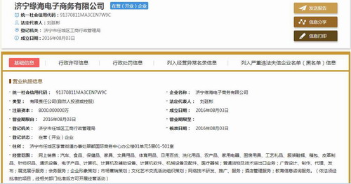 济宁缘海电商涉水直销 注册资金达到8000万