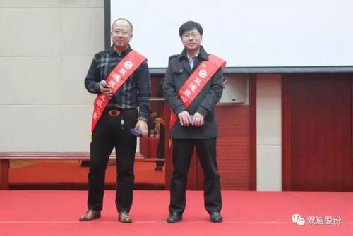 双迪股份副总裁兼珍奥双迪学院常务副院长杨磊峰为摘得杭州旅游大奖的家人颁奖