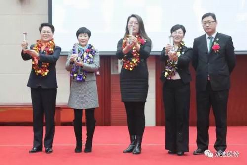 双迪股份副总裁鲁飞为获得特殊贡献奖的家人颁奖