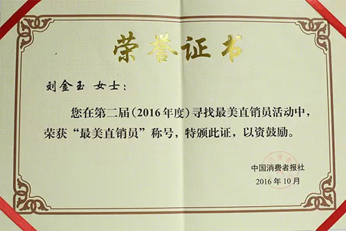 由中国消费者报社、中国消费网主办的第二届(2016年度)寻找最美直销员活动名单荣耀揭晓。金日家人为公司、为团队、为个人争光,共有三人荣耀上榜。