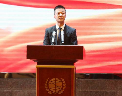 权健集团董事长、天津权健足球俱乐部总经理束昱辉现场致辞