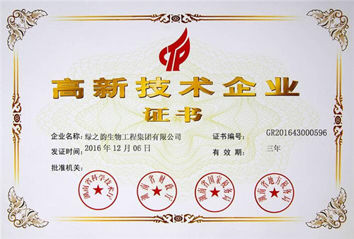 获广泛认可 绿之韵被认定为“高新技术企业”