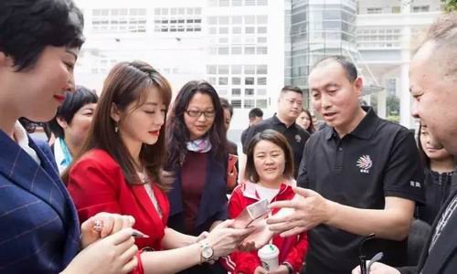▲付总给主演陈紫函赠送产品并做简单介绍