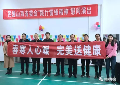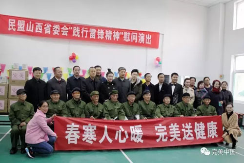 飞雪迎春到,轻风送暖回。3月5日是毛泽东提出“向雷锋同志学习”54周年纪念日。为丰富退伍老军人和离退休老同志的精神文化生活,增进他们的身心健康,2月28日,完美山西分公司携手民盟山西省委会、山西省消费者协会走进省荣军医院,开展了“慰问老革命,为老军人送健康”活动,以及“践行雷锋精神”慰问演出。