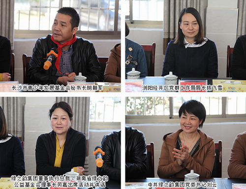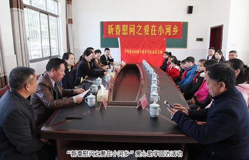 值此学雷锋活动月之际,2017年3月2日,由长沙市青少年发展基金会、绿之韵集团党委、湖南省绿之韵公益基金会联合主办的“新春慰问之爱在小河乡”爱心助学回访活动在浏阳市小河乡乌石村小学举行。长沙市青少年发展基金会秘书长胡朝军,国家级浏阳经开区党群工作局局长陈飞雪、副局长晏琼,浏阳经开区团委书记杨国理,绿之韵集团董事执行总裁、湖南省绿之韵公益基金会理事长劳嘉,绿之韵集团党委书记刘云等携手绿之韵党员、团员代表及爱心志愿者,回访慰问湖南省绿之韵公益基金会“绿韵圆梦·书香助学”项目于2016年帮扶的10名贫困学生,并为他们送上慰问品,延续爱心。