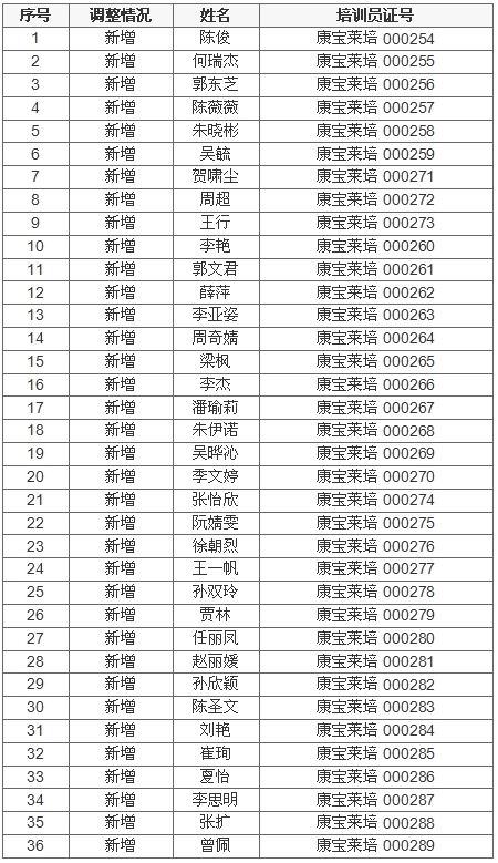 2017年3月7日,商务部直销行业管理信息系统公示康宝莱(中国)保健品有限公司调整直销培训员备案信息。康宝莱本次新增直销培训员36人。详细讯息如下: