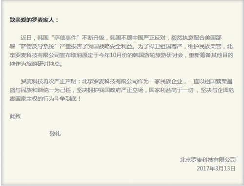 罗麦发关于取消2017韩国游轮研讨会的通告