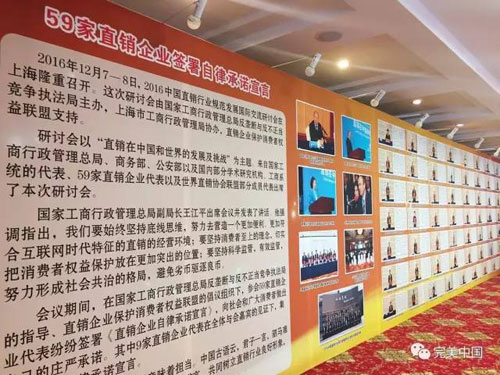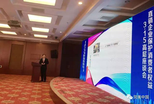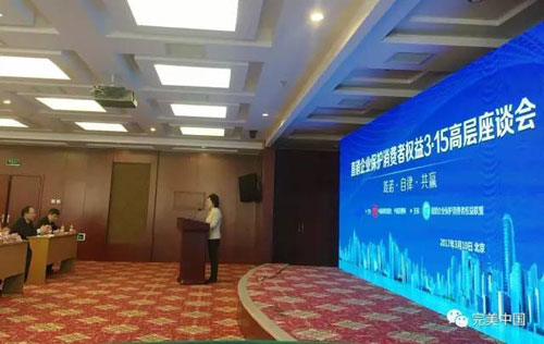 3月10日,2017直销企业保护消费者权益3·15高层座谈会在北京召开。本次座谈会由中国消费者报社、中国消费网主办,直销企业保护消费者权益联盟提供支持。会议主题为“践诺、自律、共赢”,完美公司等60家直销企业100余位代表出席了会议。