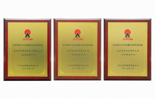 会议上,经评委组综合评审,太阳神杭州配送中心、北京配送中心、沈阳配送中心项目组以优质的物流服务水平荣获“太阳神2016年质量月标杆项目组”奖项。