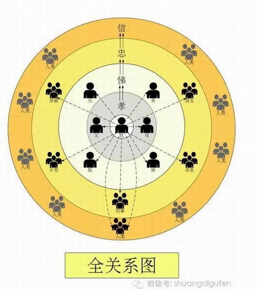 我们用孝道把所有的关系都连接在一起成为全关系,从孝父母到孝兄弟姐妹,再到孝亲朋邻里身边人,直到孝众生、孝民族、孝国家,孝道连接并贯穿人与社会,因此孝道是全关系营销的理体。